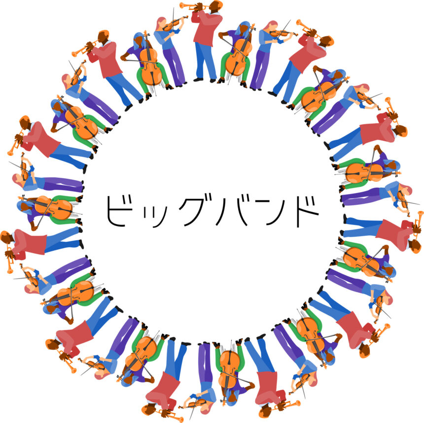 ビッグバンドは、大編成のジャズオーケストラで、トランペットやサックス、トロンボーンなどのホーンセクションとリズムセクションが特徴です。迫力のあるブラスサウンドとスウィング感あふれるリズムが活気ある華やかさを生み出します。